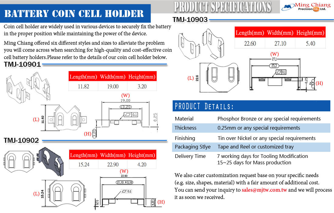 产品数据表(点击此处): TMJ Battery Coin Cell Holder Series