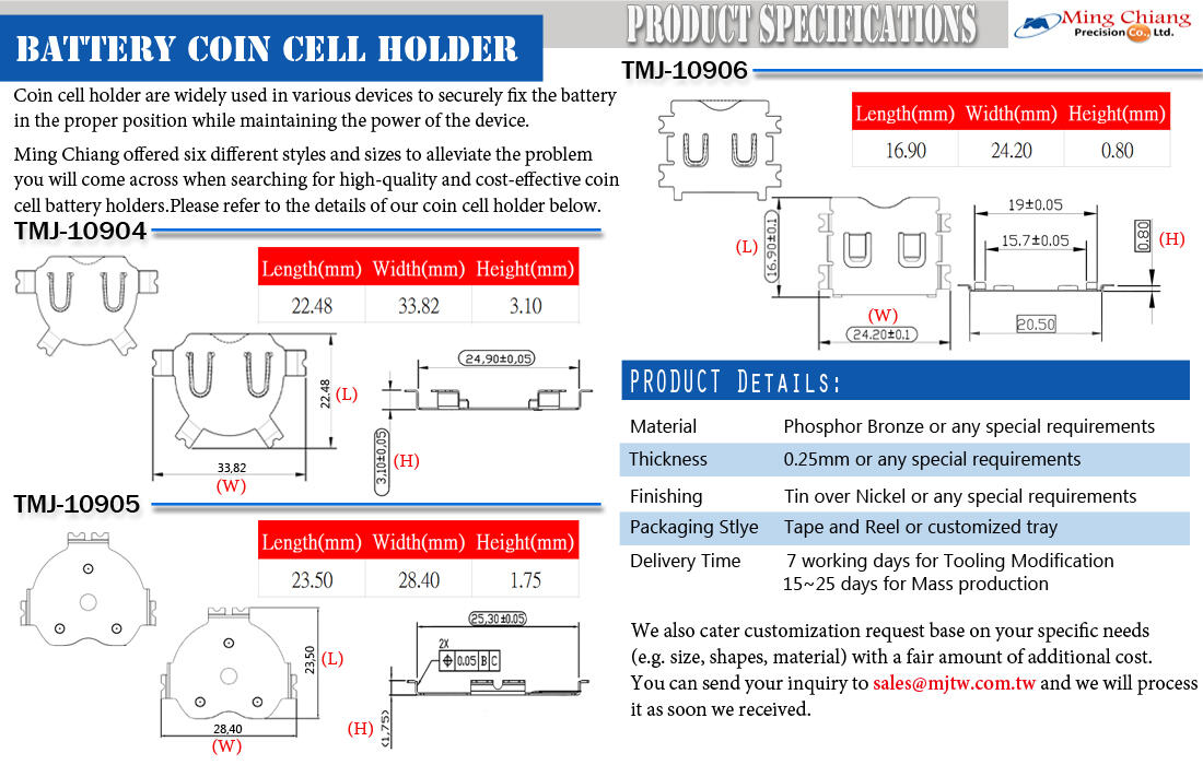 产品数据表(点击此处): TMJ Battery Coin Cell Holder Series